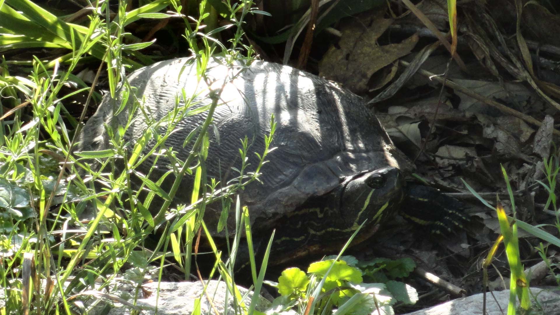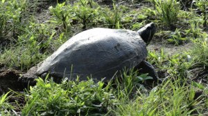 Since I’m on the subject of laying eggs, I was visited by a large, (let me stress LARGE!) painted turtle the other day. She was digging a hole in my lawn and I can only guess her intent was to lay a few eggs. It must have been the photographer hovering around that caused her to change her mind.