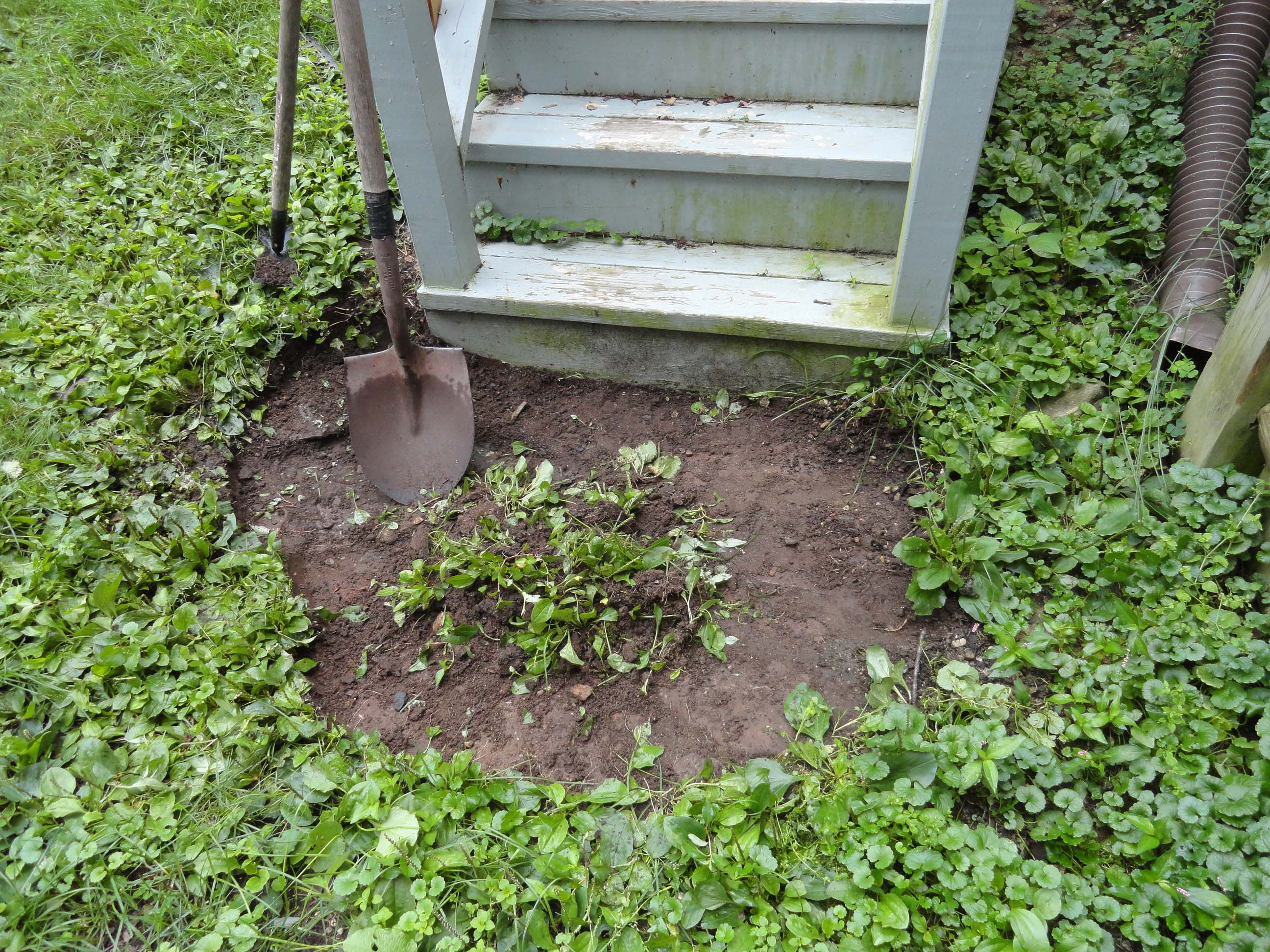 Much to my delight, the Secret Garden discoveries are continuing. While weeding around the front steps I happened upon another flagstone pathway. It was buried five inches beneath the grass! I have to wonder if the original owners installed these paths and, if so, were they the last people to walk on them? That would make these walks over 70 years old! May the surprises keep coming (only the good ones though).
