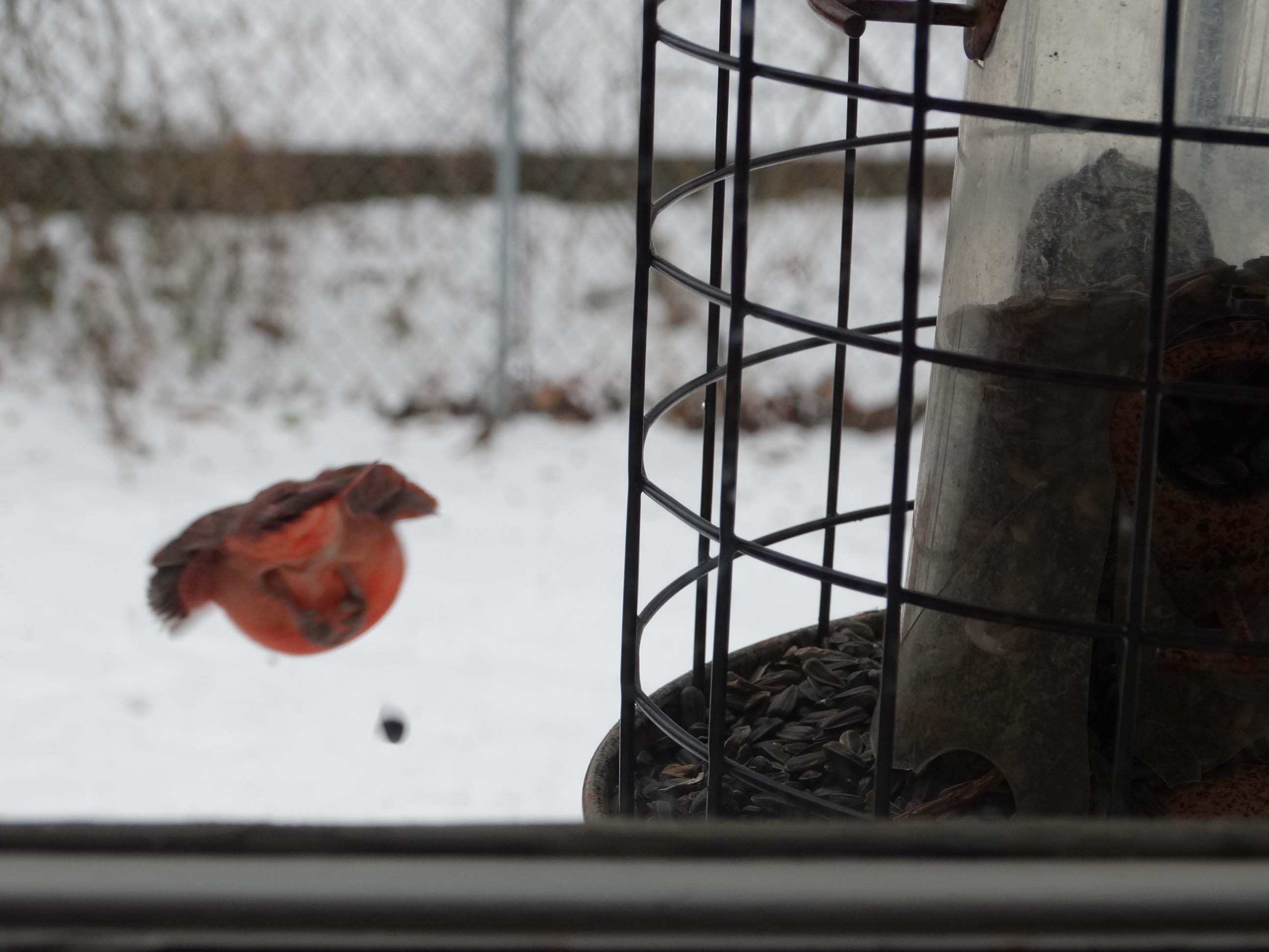 cardinal leaving the feeder