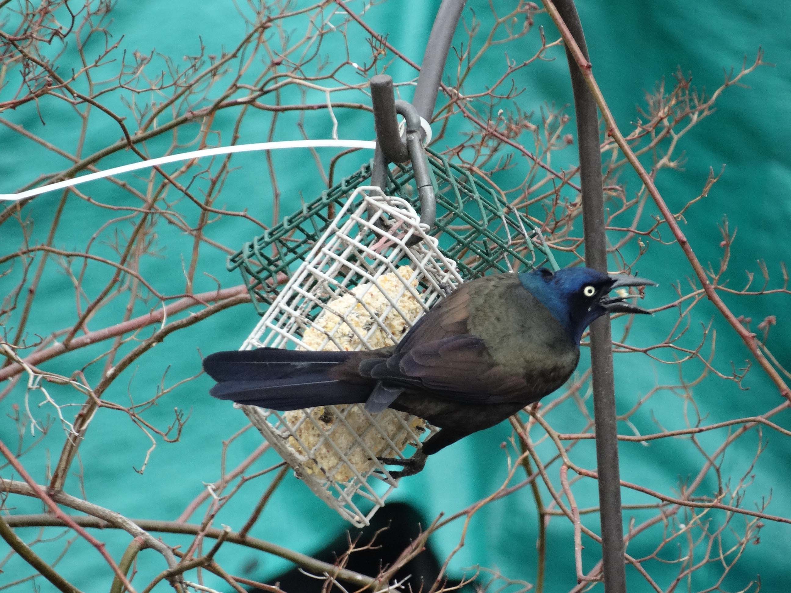 grackle eating suet