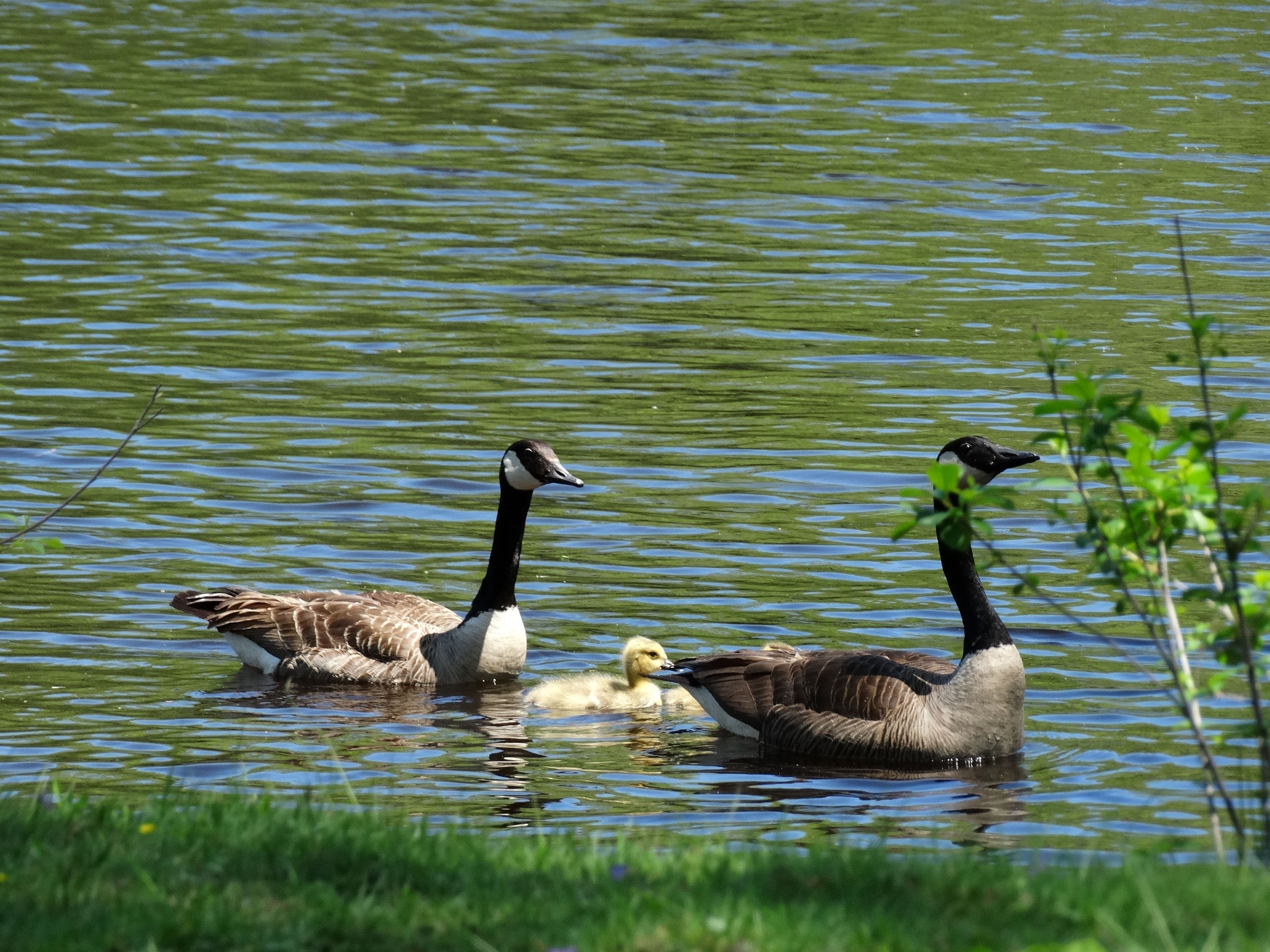 Mama goose and Papa goose stopped over for a visit, goslings in tow. Only two are left, one of them either fed a snapping turtle, carp, or fisher. What should have began as a clutch of six is getting mighty small. I’m aware there isn’t a shortage of Canadian geese but being up close and personal does tug on my heartstrings.