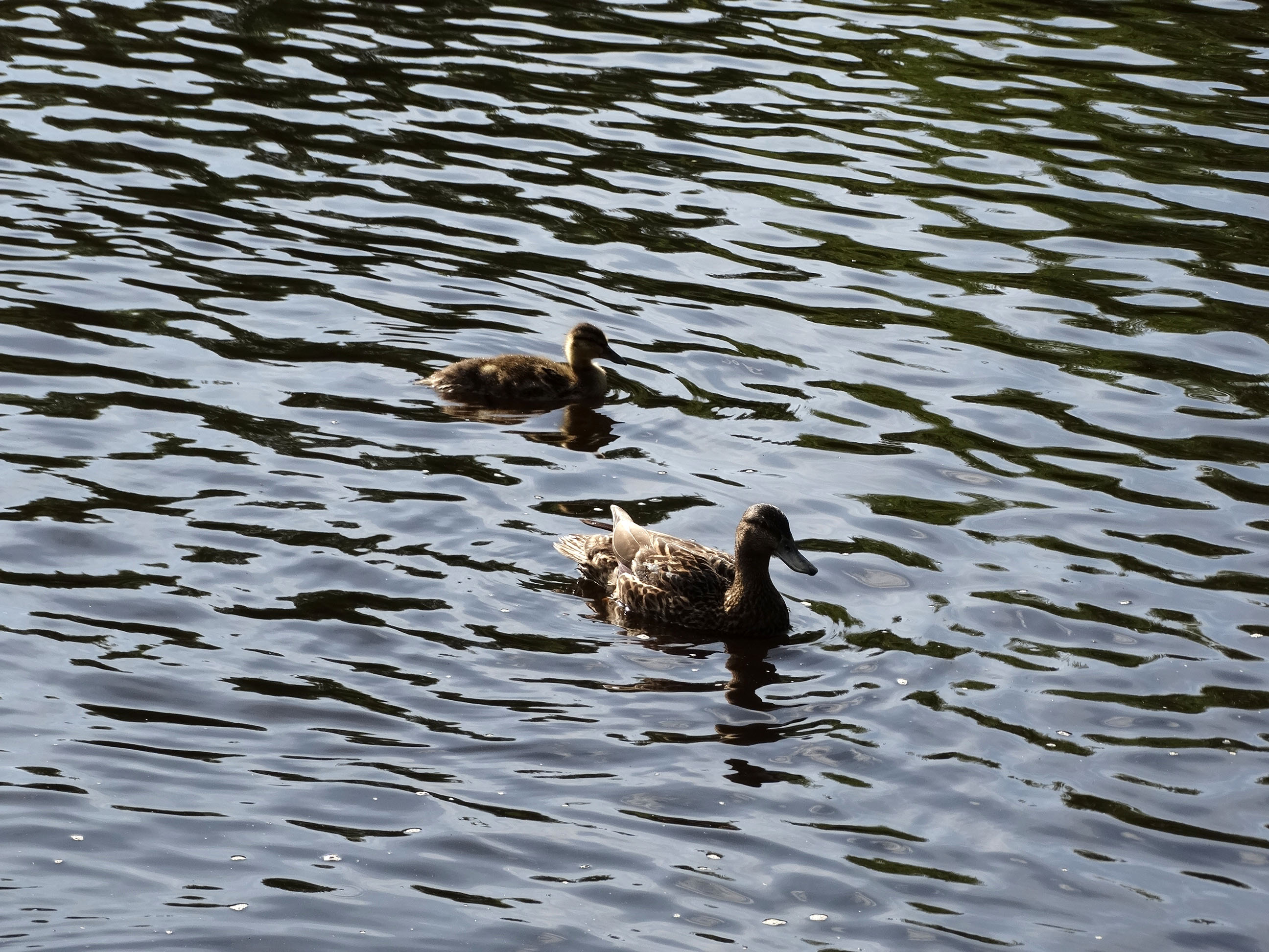 The only duck left on the water was the chick! He’s (she’s) frantically calling from the middle of river. Gina’s on the beach calling back, and I’m sitting on the wall taking pictures.