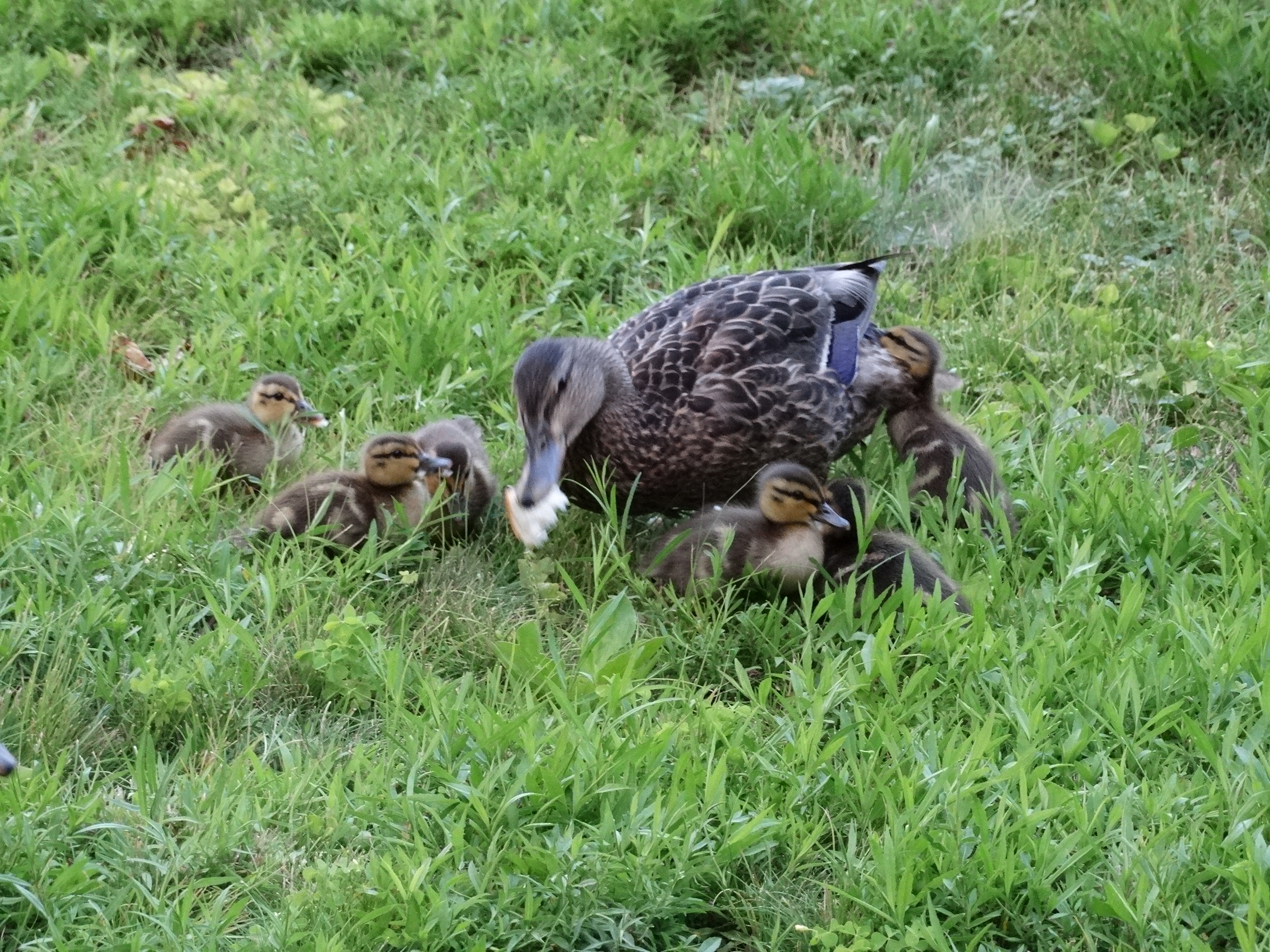 Angie chowing down with her ducklings.