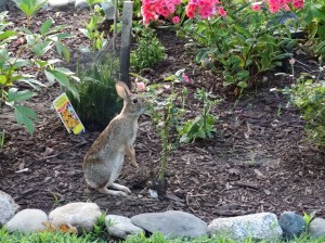 Seems this wascally wabbit doesn’t like my flowers to have, well, flowers! Just like Morticia Addams, she snips the heads off, only using razor sharp incisors instead of pruning shears. Around 5:30 in the morning she can be seen nibbling here, snipping there. I can almost hear her muttering to herself how much work a garden can be.