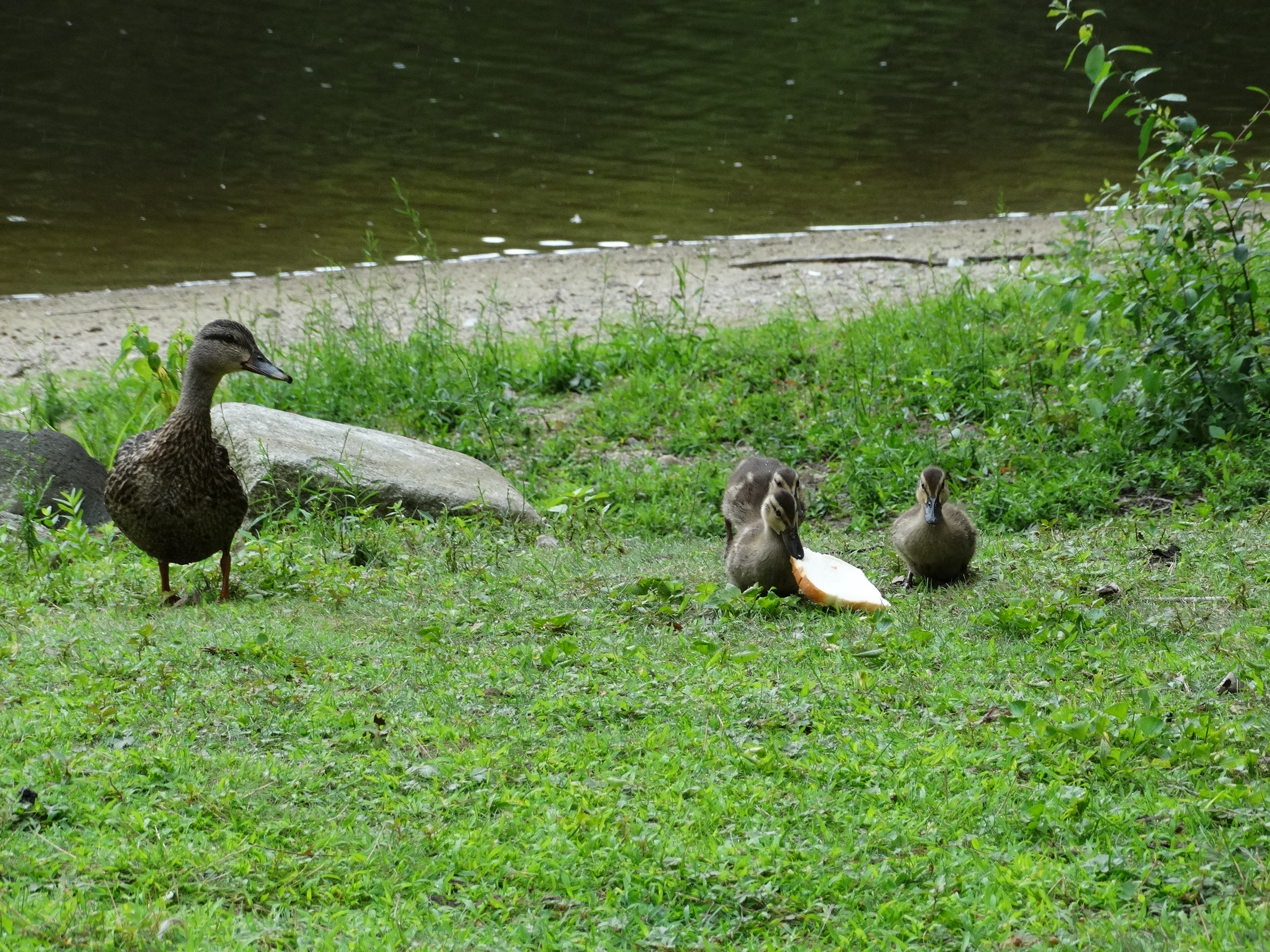 Angie’s brood has shrunk down in size but not feistiness. They get into the thick of things with the adults, pulling feathers like pros. Why not? Their mom is Angie, coolest hen on the river.