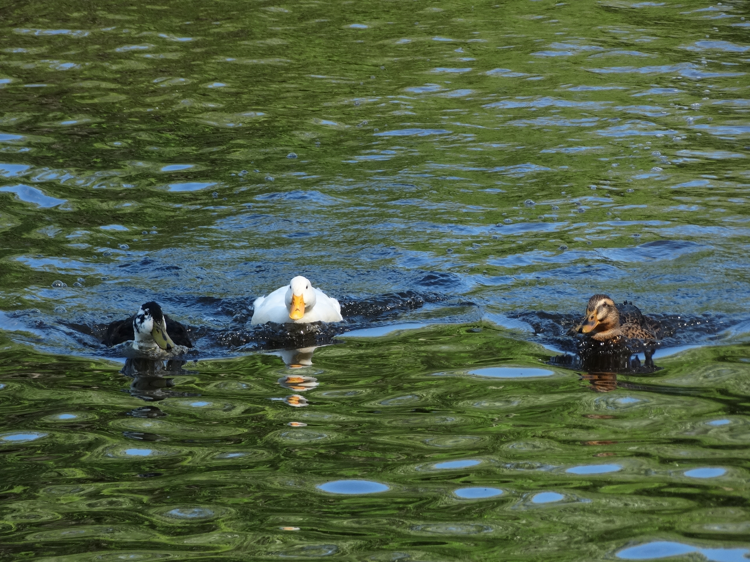 At present I have approximately three dozen ducks wanting daily handouts, along with my neighbor’s three ducks from Agway. They live two houses down river but they’ve adopted me as their aunt. Loud, pushy, and full of antics, they provide a never ending source of entertainment during mealtime.