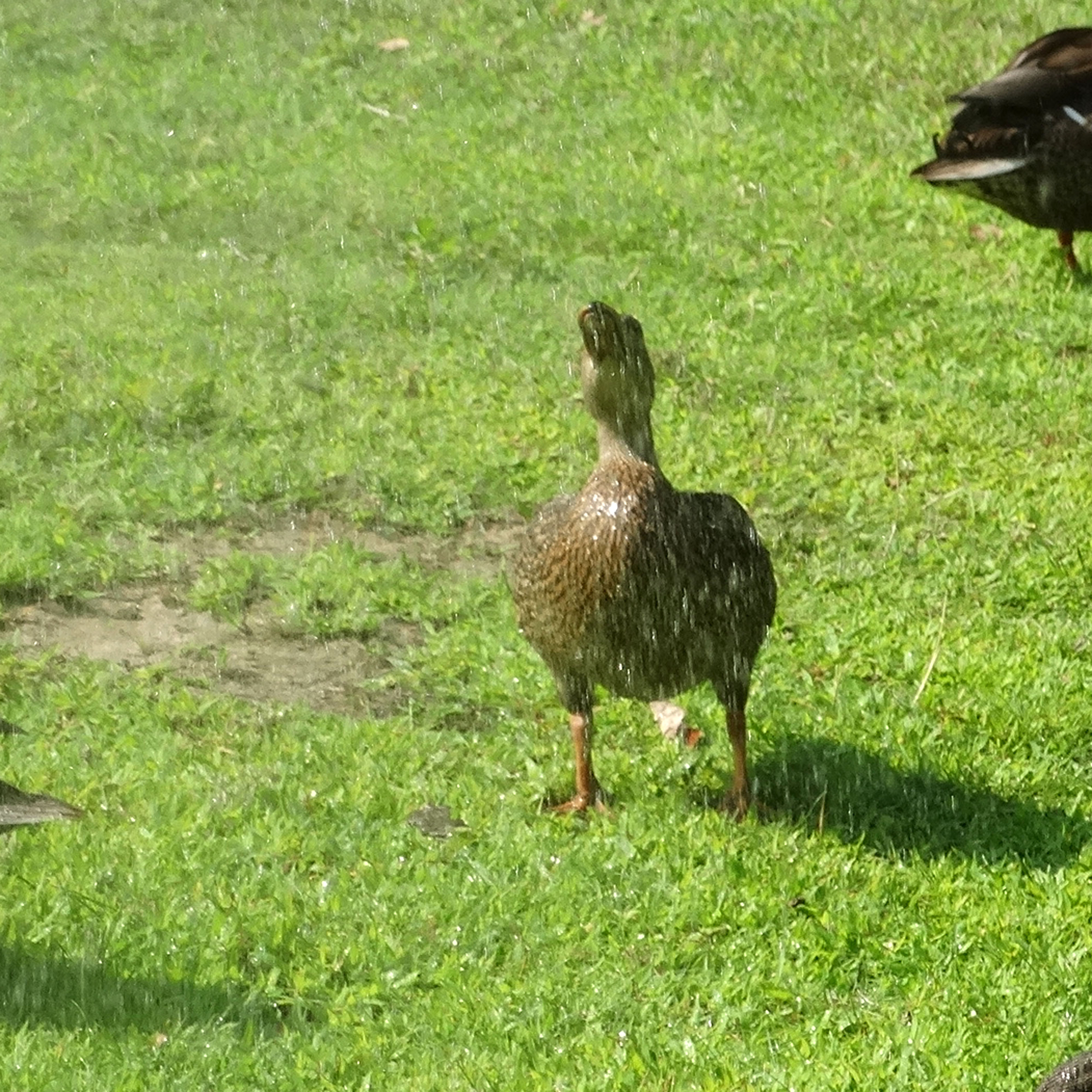 When I water the gardens in the morning, several of the ducks will come onto the lawn for a quick shower and drink. It must be nice having something clean to drink instead of the water from the Concord River.
