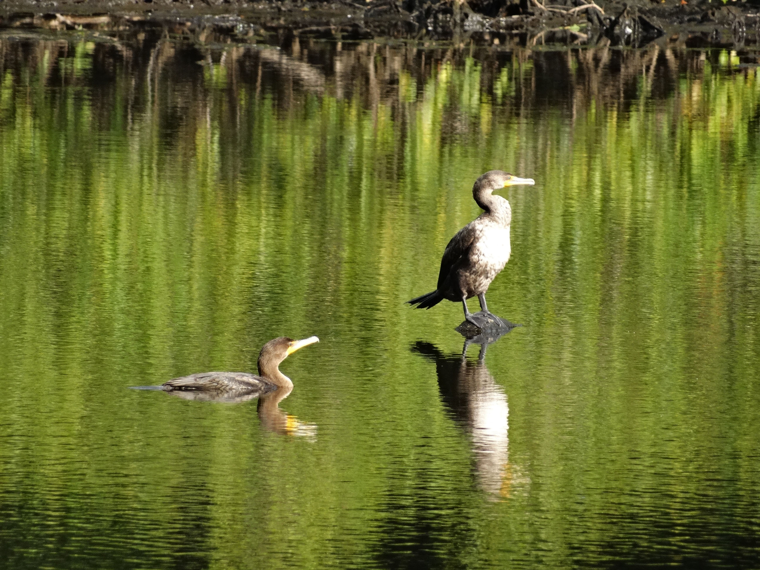 The cormorants have been spending quality time together. The water level is low enough to expose some rocks, which the cormorants enjoy, taking turns to sun themselves. Kind of like “king of the mountain,” bird style.