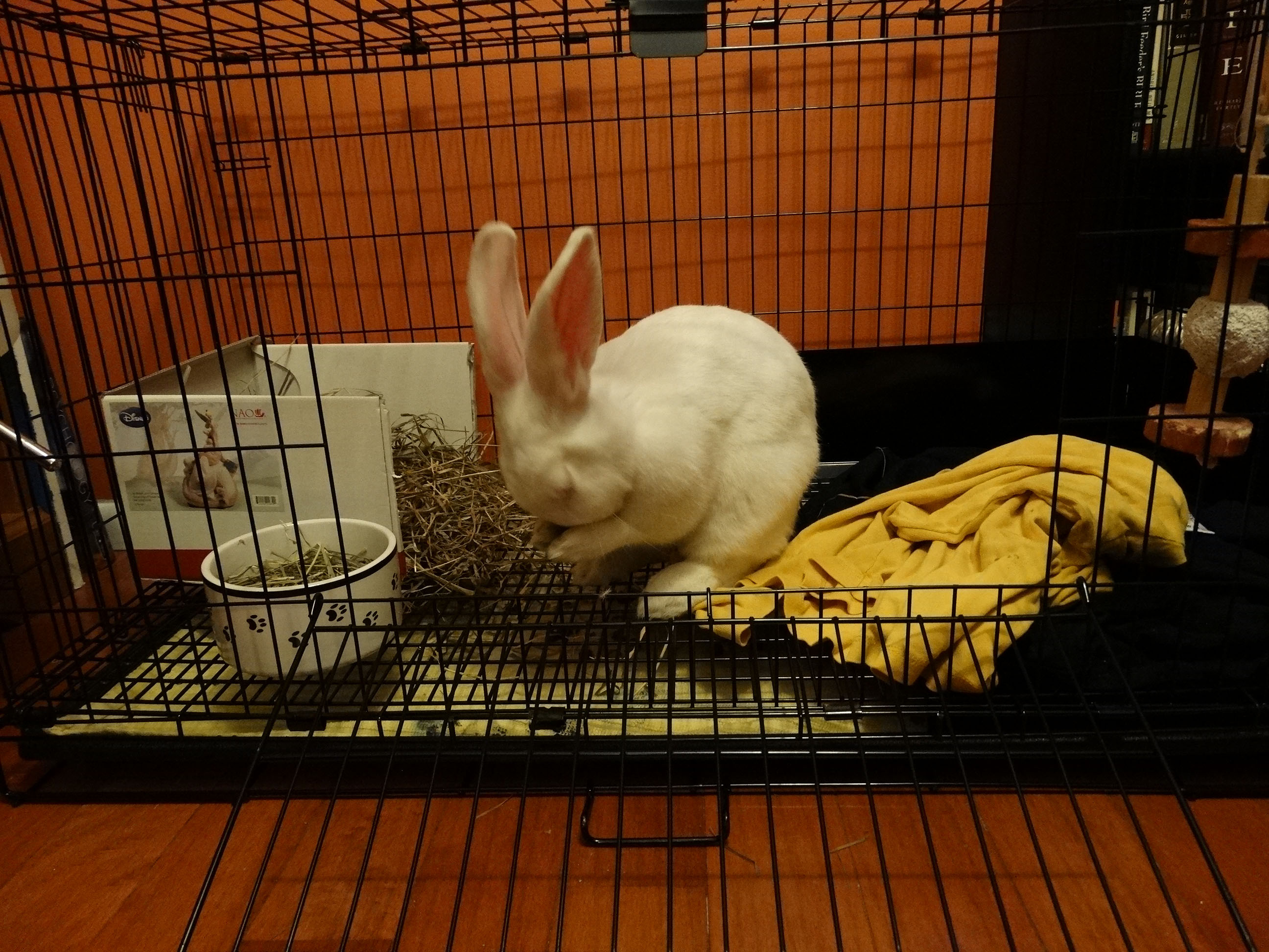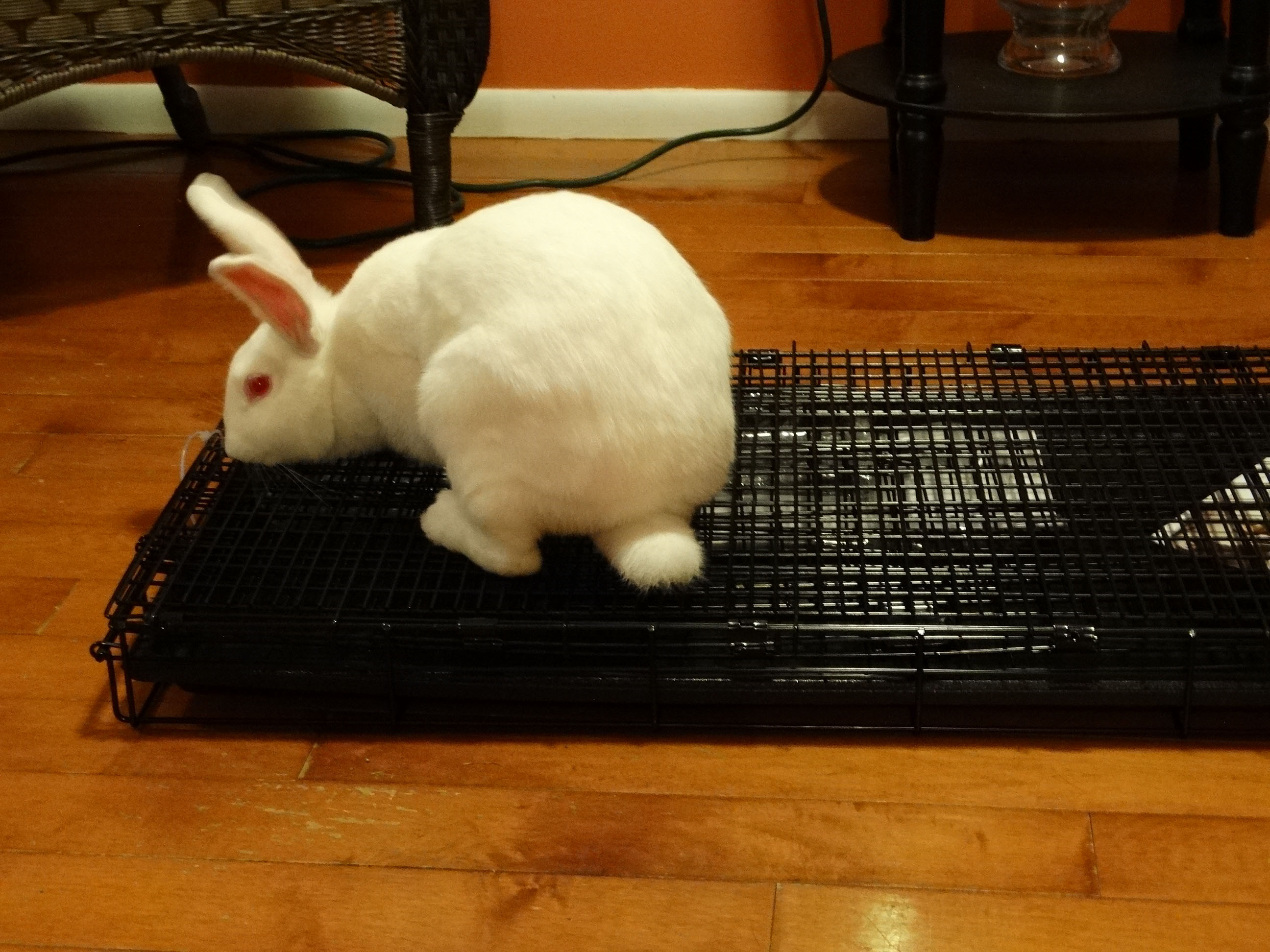Once the house (cage just seems too cold a word) was assembled, Hazel, being the curious rabbit that he is, made sure it was built with sound construction.