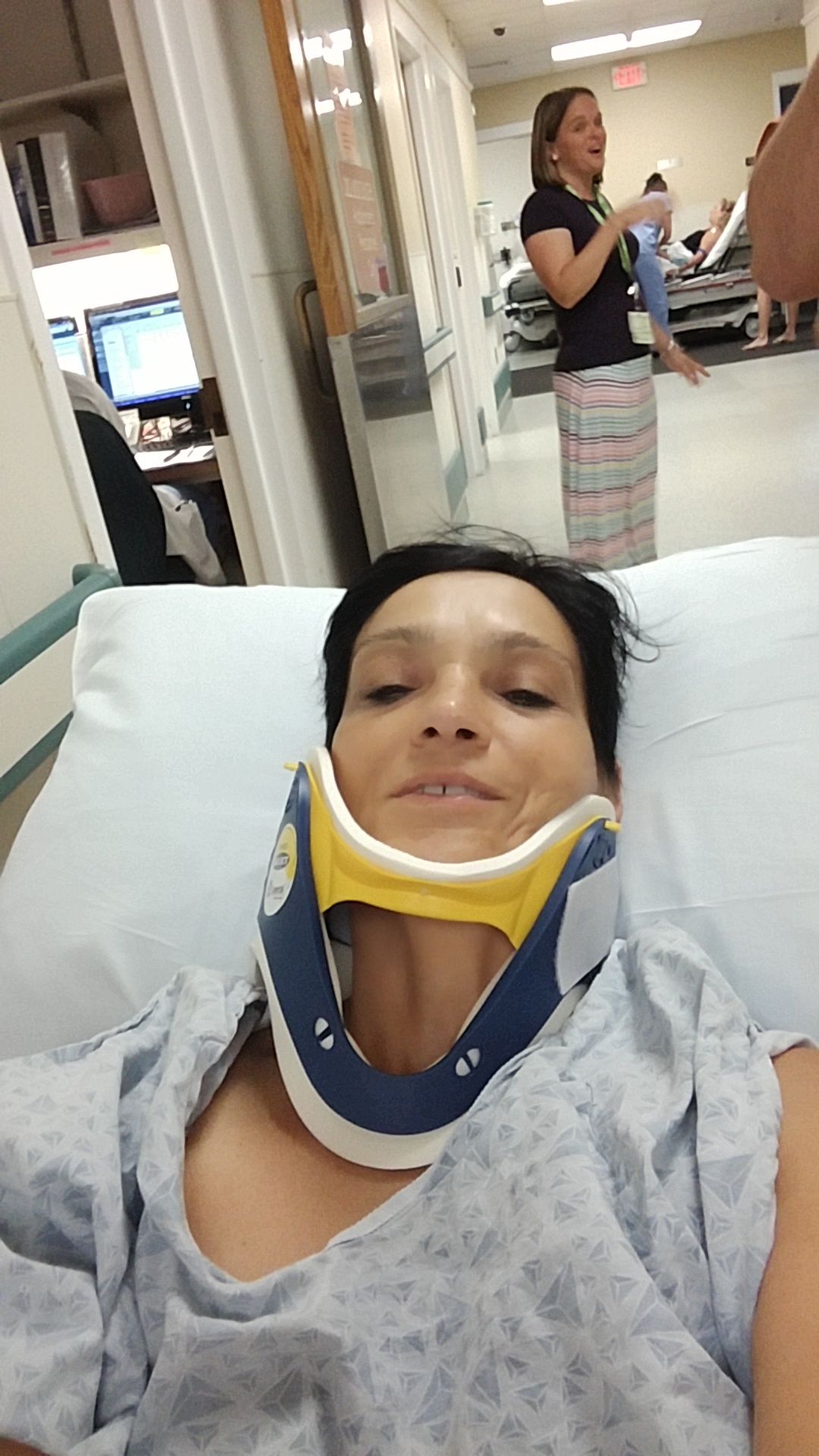 Thank you to all the handsome firemen who came to my rescue, along with the kind owner of a nearby hair salon, and the patient policeman. Along with the staff of Lahey, the whole ordeal was quite pleasant (HA!) While in my comfy spot in the emergency room aisle, safely tucked on my gurney, wearing a very fashionable neck brace, Chris took control, handling the towing of the car, while interacting with the hospital’s security guard. My son rocks.
