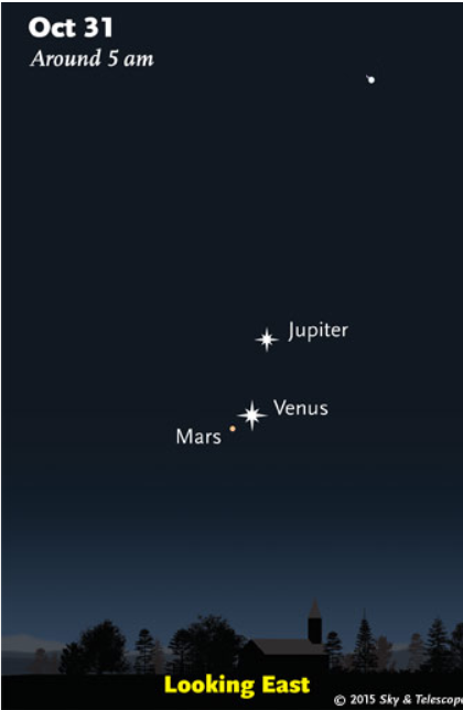 By the 31st of October, they were in perfect alignment, called a conjunction.