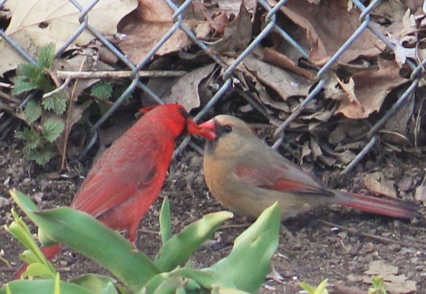 While cleaning the gardens I always have my camera ready which allowed me to capture a tender moment–the ceremonial feeding between Northern cardinals.
