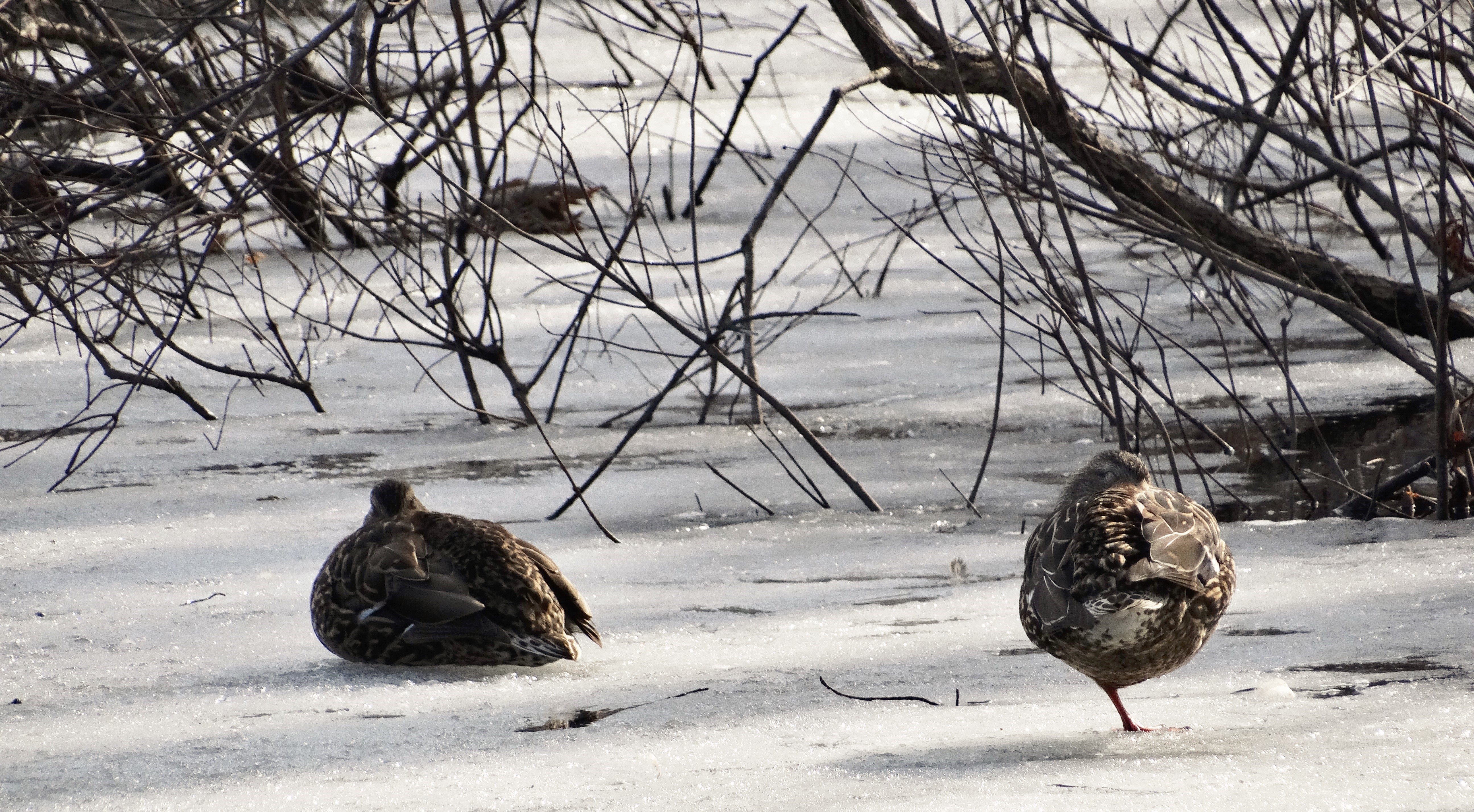 Back to winter. Or should I write, the end of winter? And none too soon, for me and my little corner of the Concord River. The late winter storm of this past week seemed to imply winter might hang around for another few months. Let me tell you, the ducks were miserable.