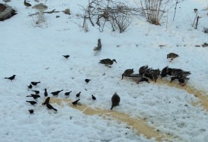 Seriously. I’ve been living here for four years this May (Wow!) and this was the first season where I had honey bees eating my cracked corn. Seems they appreciate a high quality grain as much as the birds and ducks do.