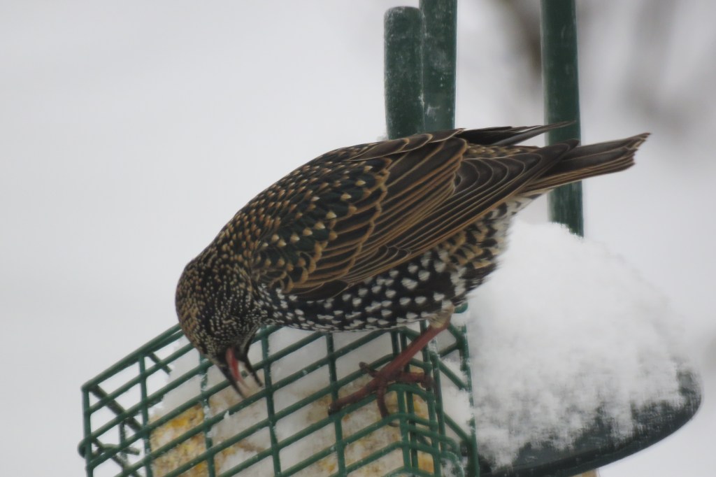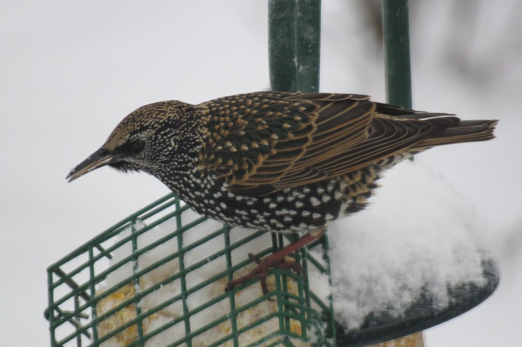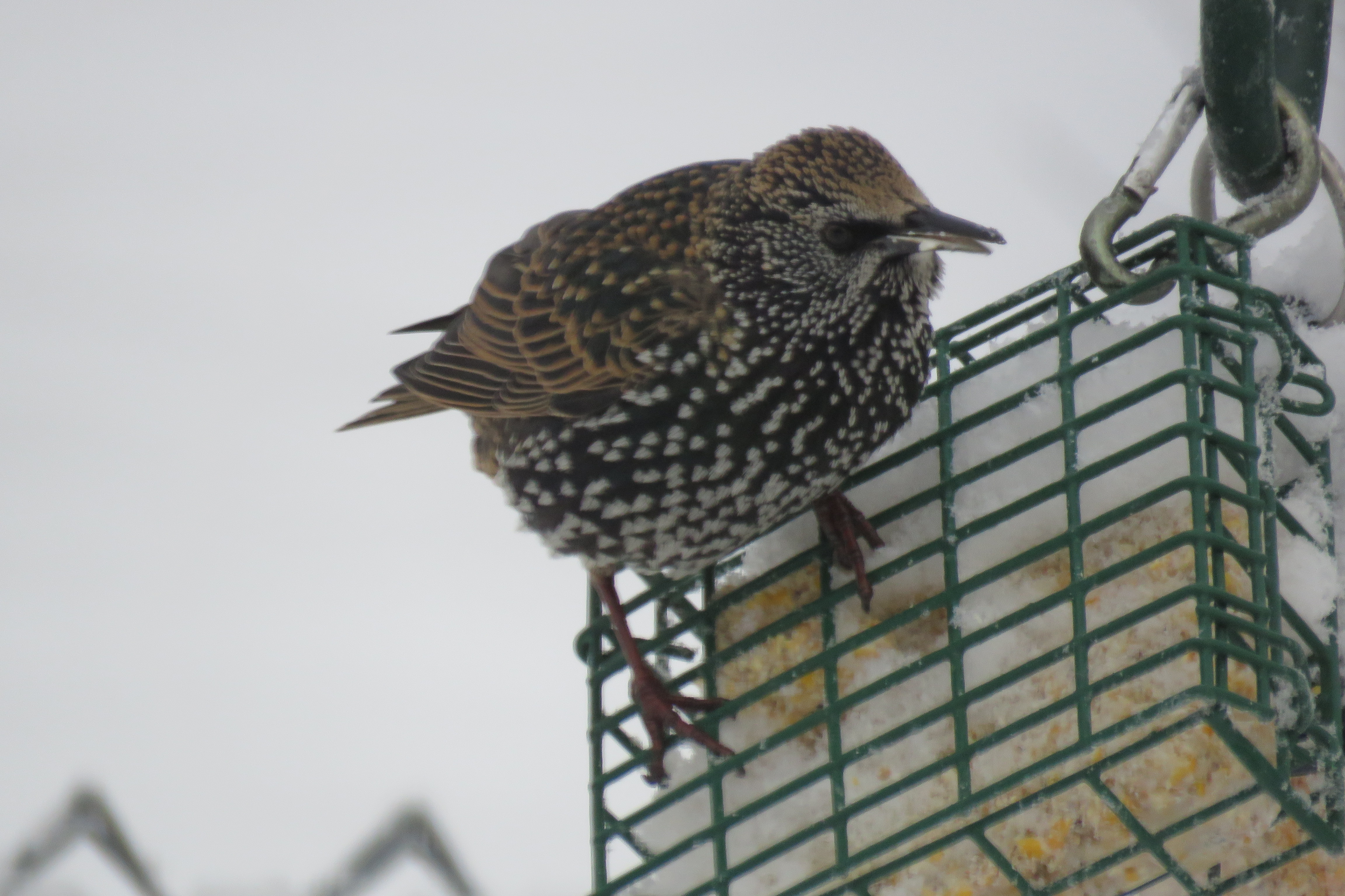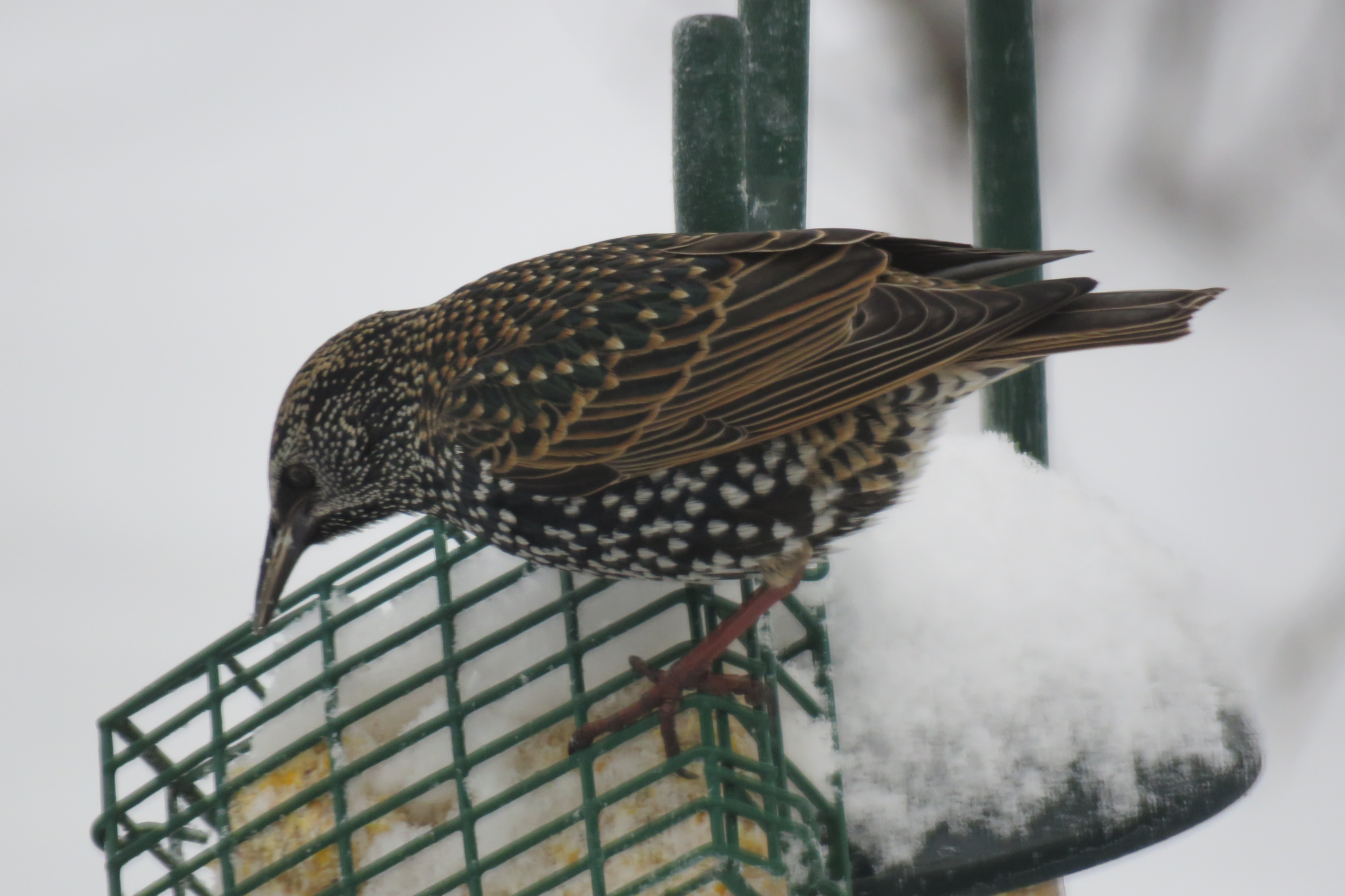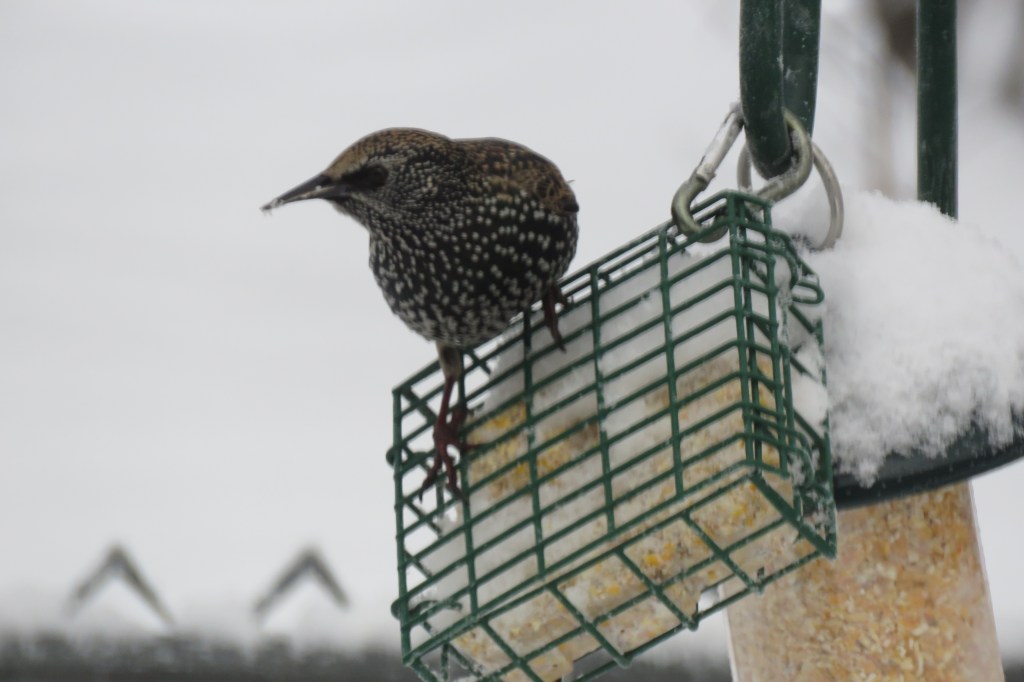 Moving on to other birds, a winter plumage Starling came by for a snack as he was passing through the area.