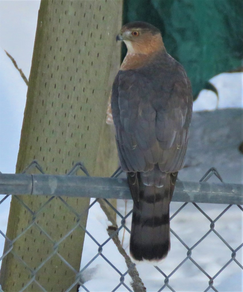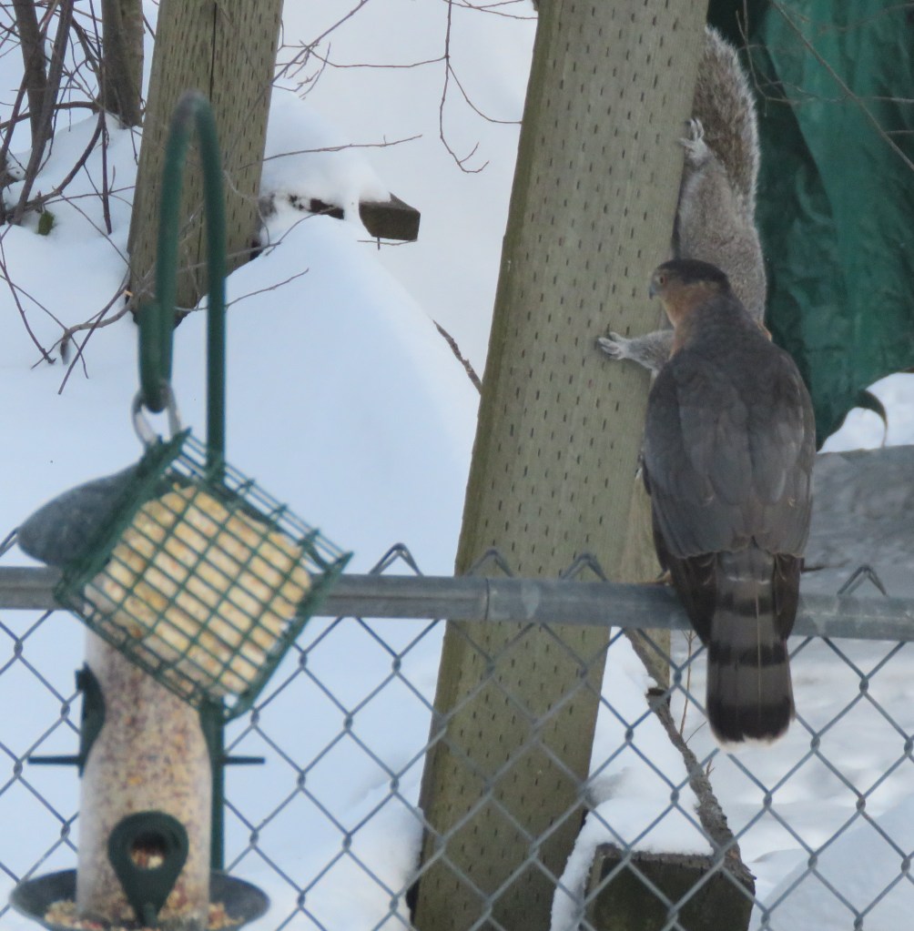 The Cooper’s hawk was still hanging around (or arrived, I can’t tell if it’s the same hawk or a different one).