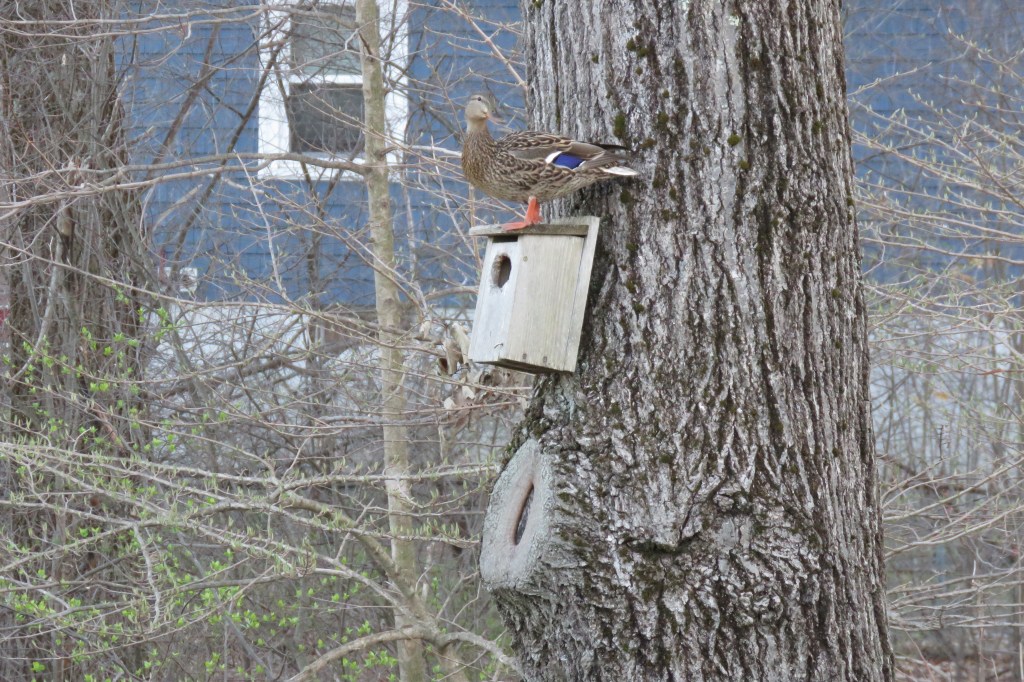 The next morning the eggs were gone. Later that day five more eggs appeared in the nest and at dusk the hen was sitting on them. I didn’t dare take a photo so you’ll just have to believe me. The third morning all the eggs were gone again but later that day, at dusk again, she was back on the nest. Really, how many eggs can a Mallard hen pop out over a span of three days? And who was stealing the eggs to force her to lay more?
