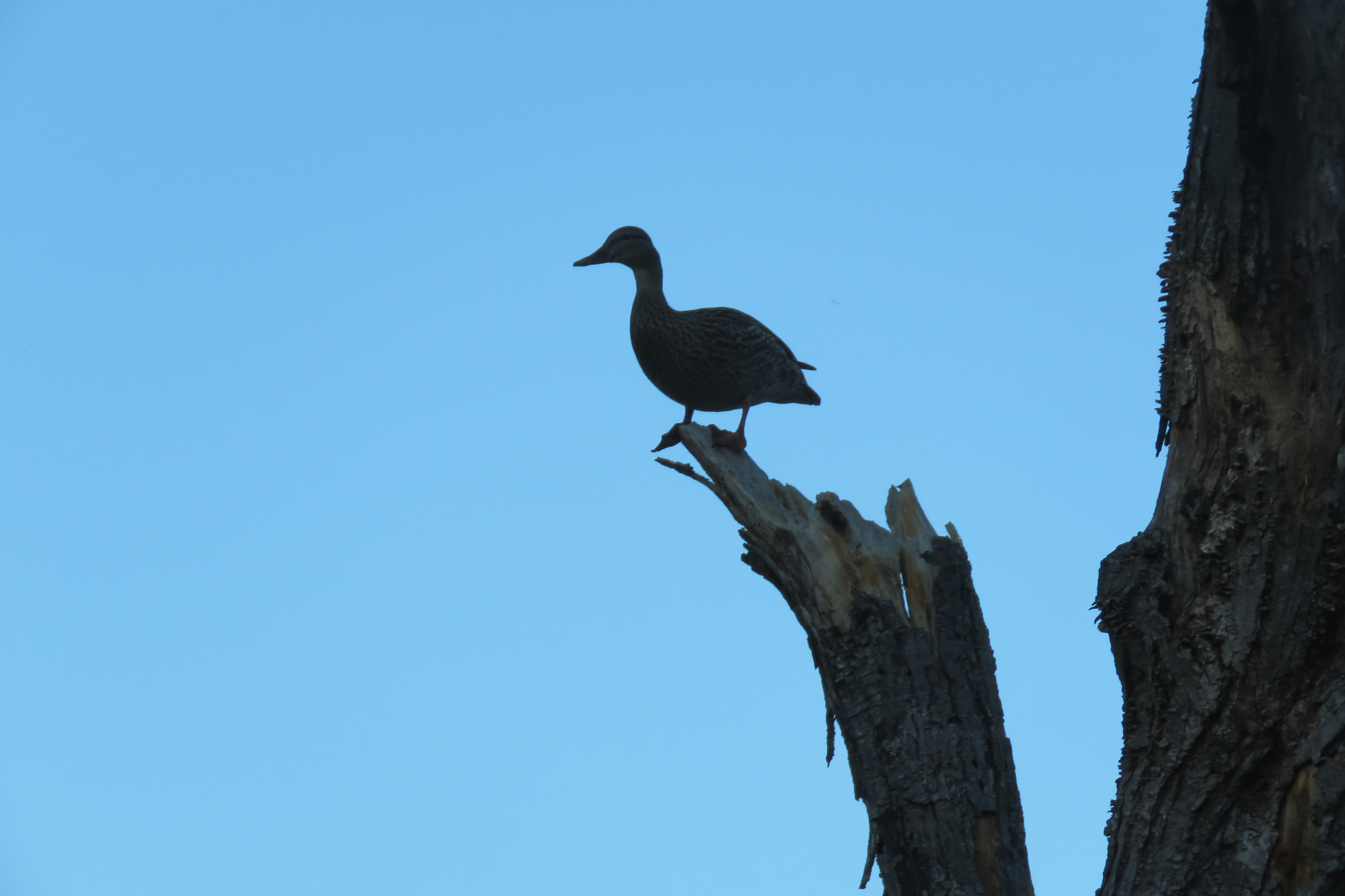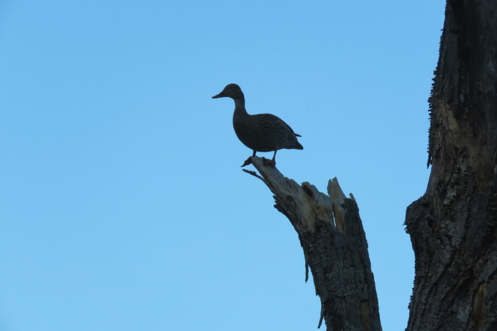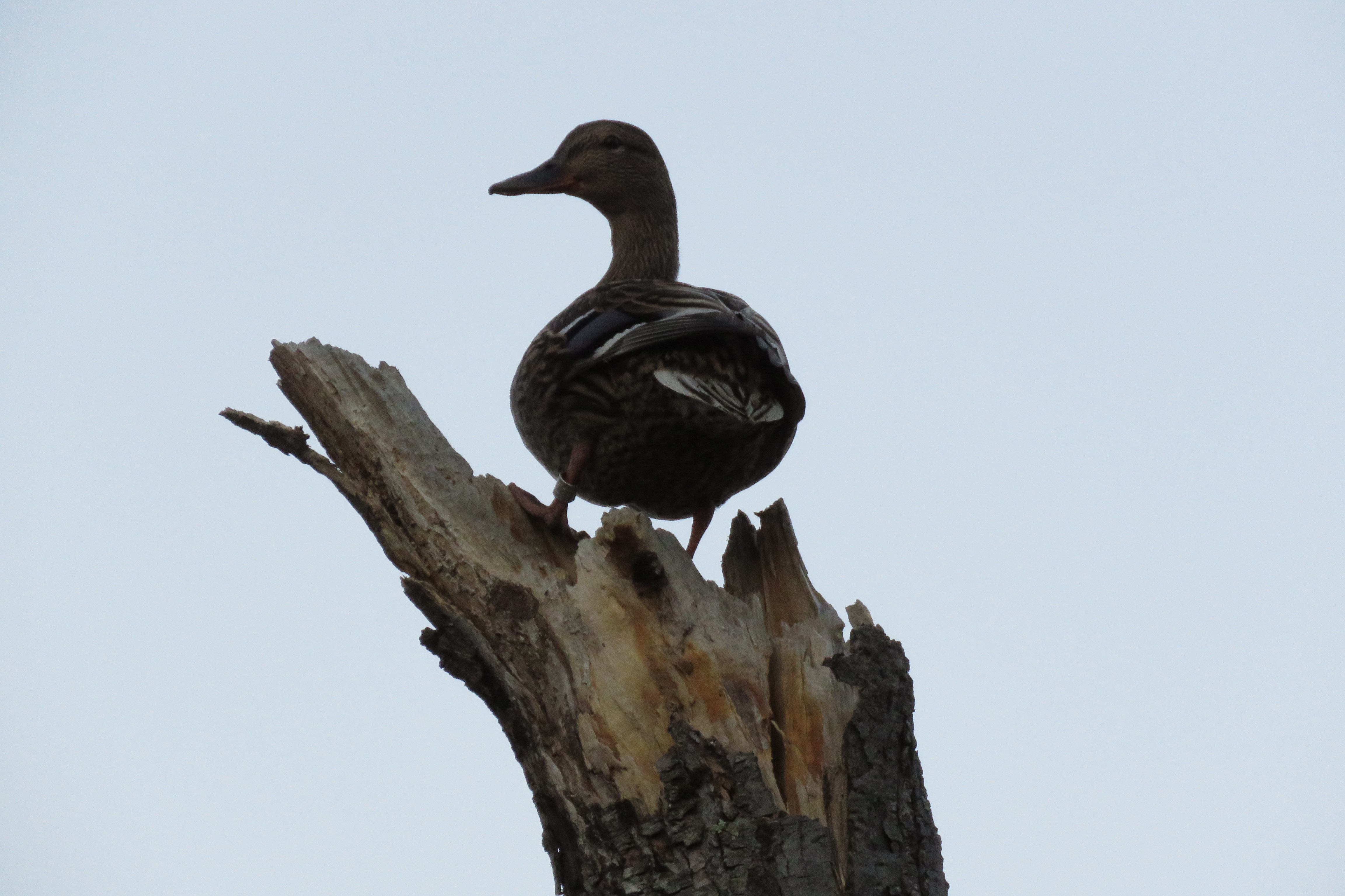 A Mallard hen entertained me by pretending she was a Wood duck.