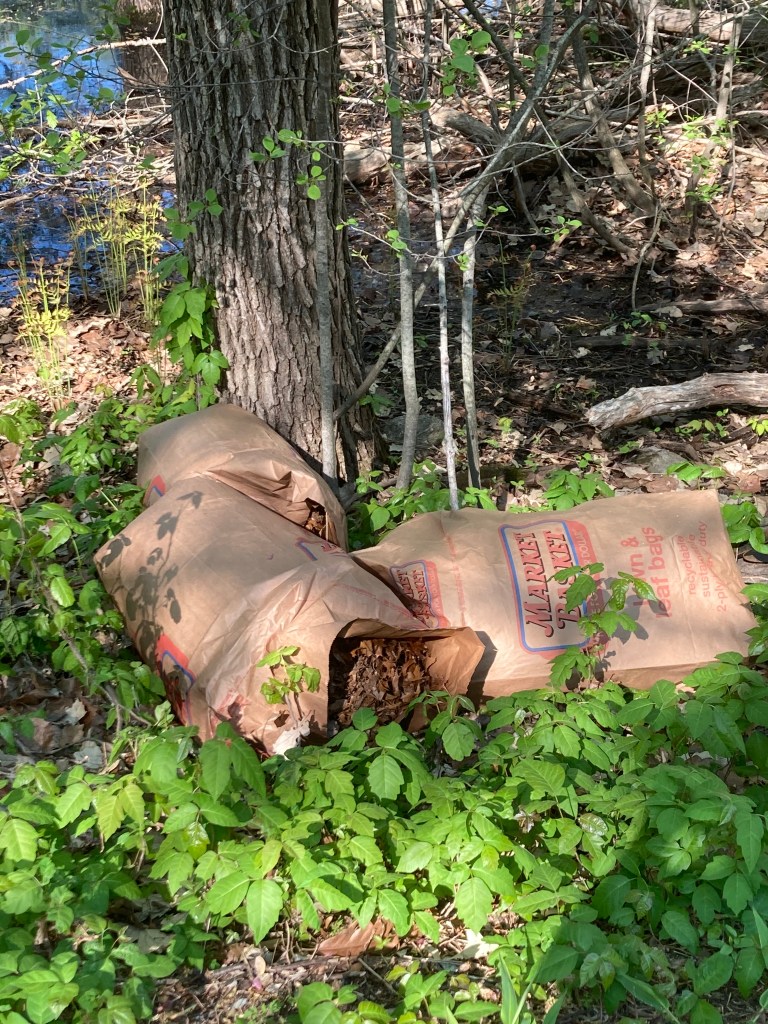 My neighbor called the police and I called the town’s DPW department; we both received less than helpful responses. I notified the EPA and my neighbor climbed down into the tick (more on ticks in a bit) infested poison ivy and dragged the bags up the embankment and onto the road. He then enlisted a few more neighbors and got the town to come out and pick up the bags. Okay, here’s my question: What kind of 🤬 dumps bags of leaves and stuff into a marsh when the town will pick up unlimited bags for free? Or, What kind of 🤬 dumps 🤬 into a marsh, period?
