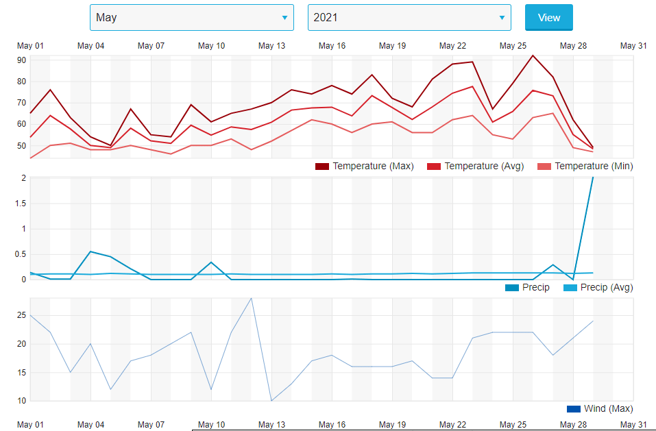This a breakdown of the temps from the month of May 2021 for my little corner of the Concord River.