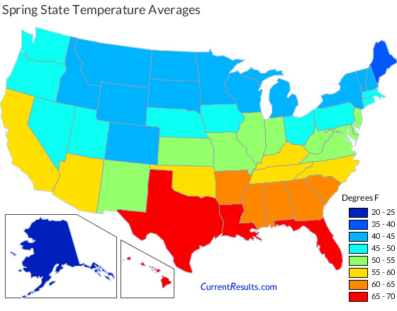 According to data collected by weather stations throughout each state during the years 1971 to 2000, this is what the spread of temperatures should look like.