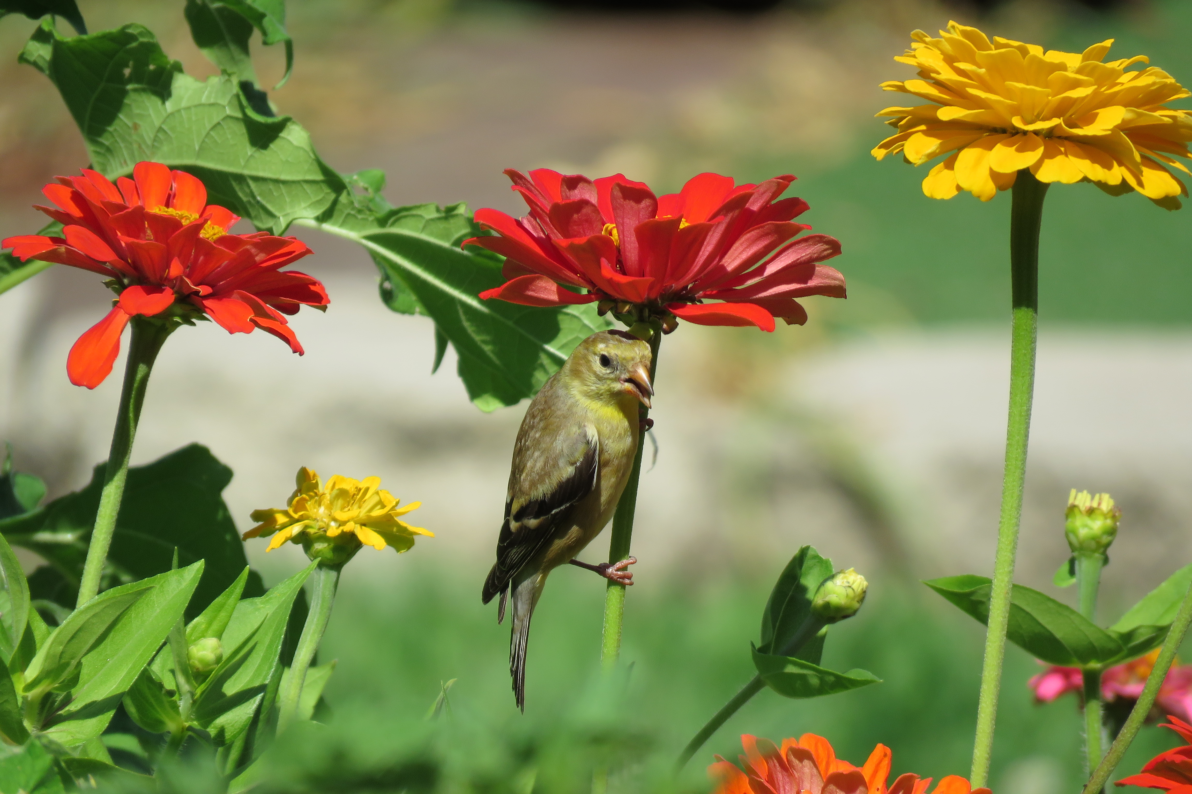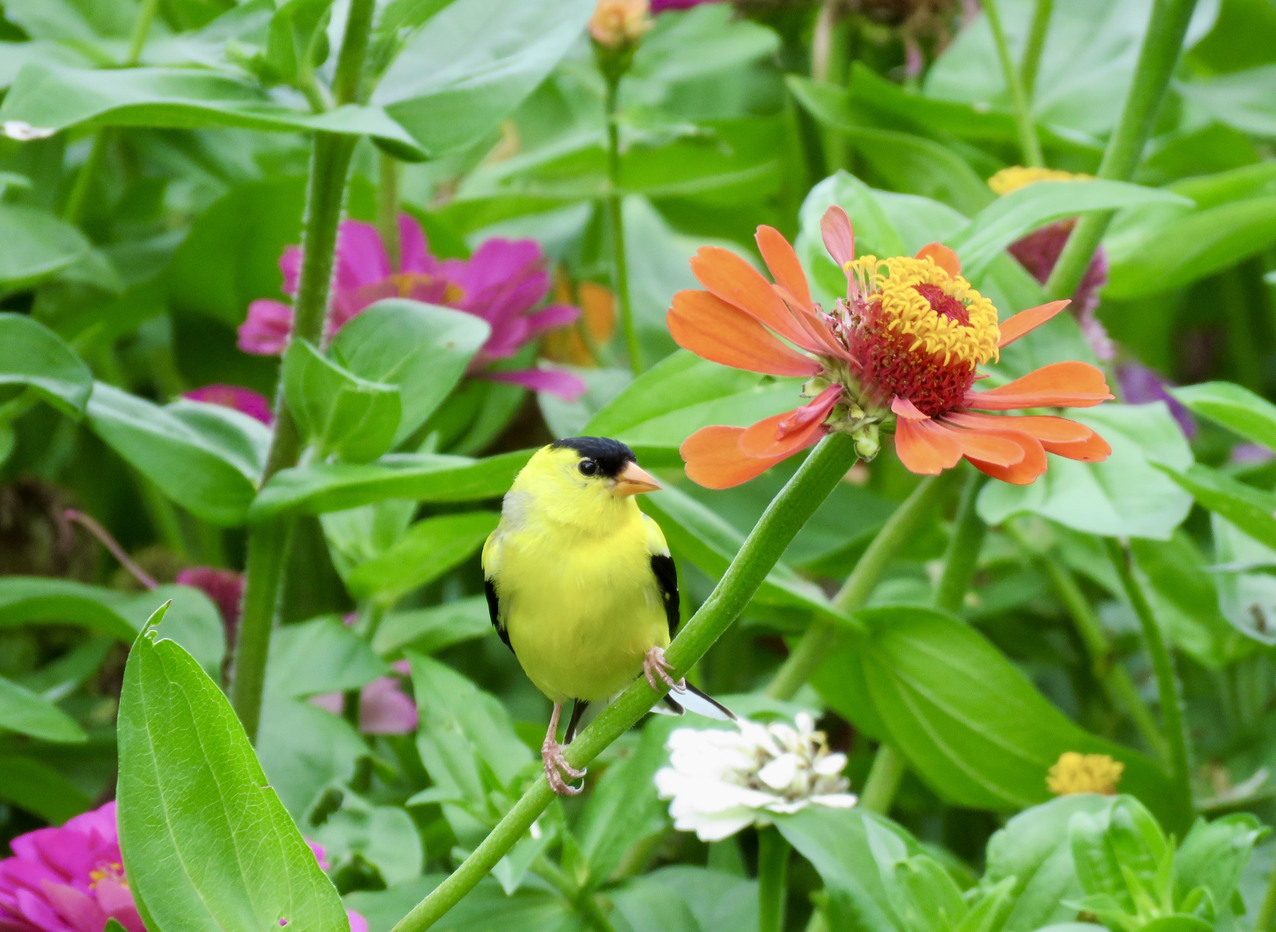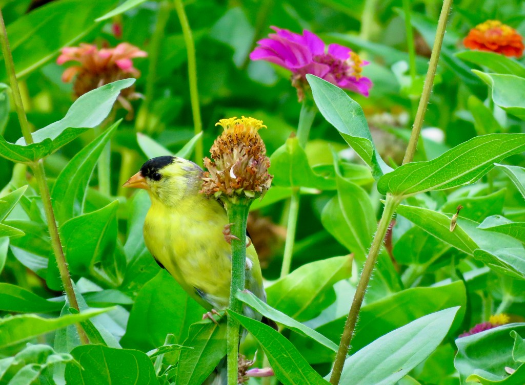 An Abundance of American Goldfinches helped to brighten my gardens.