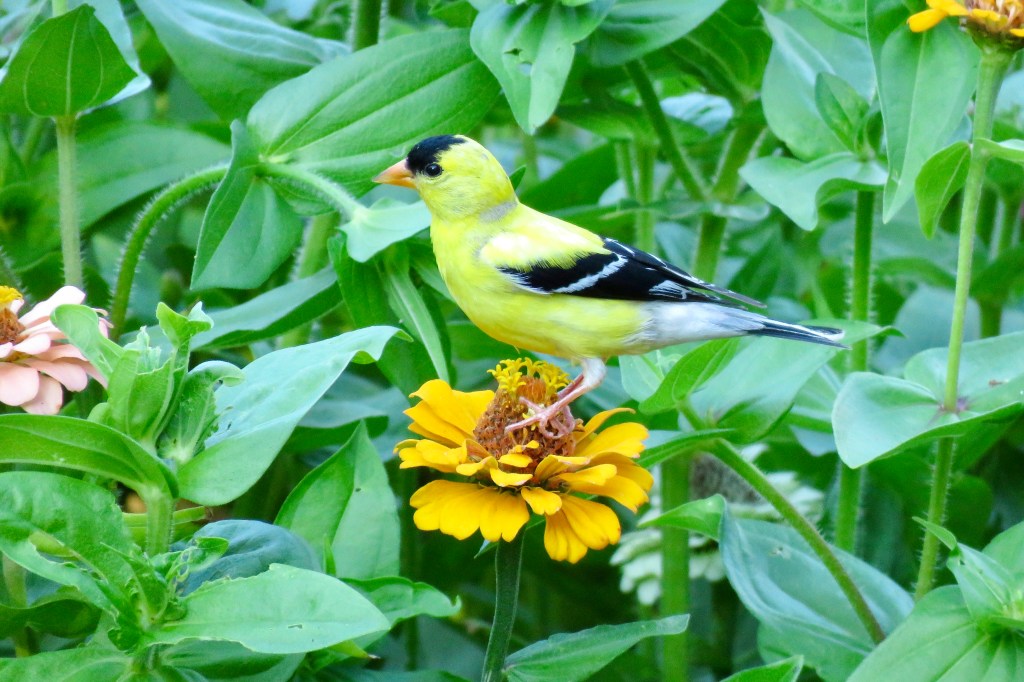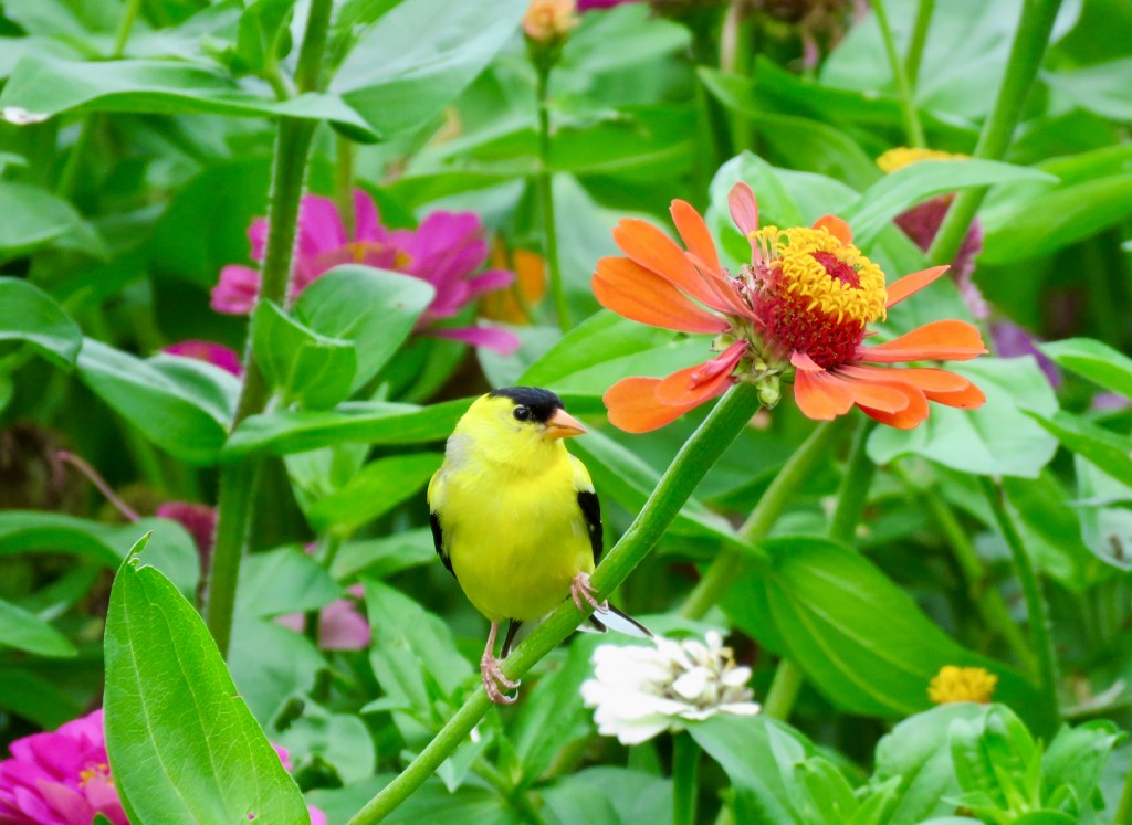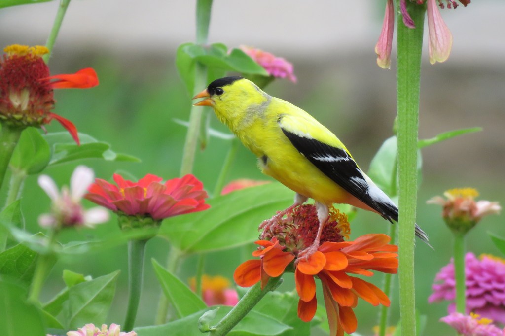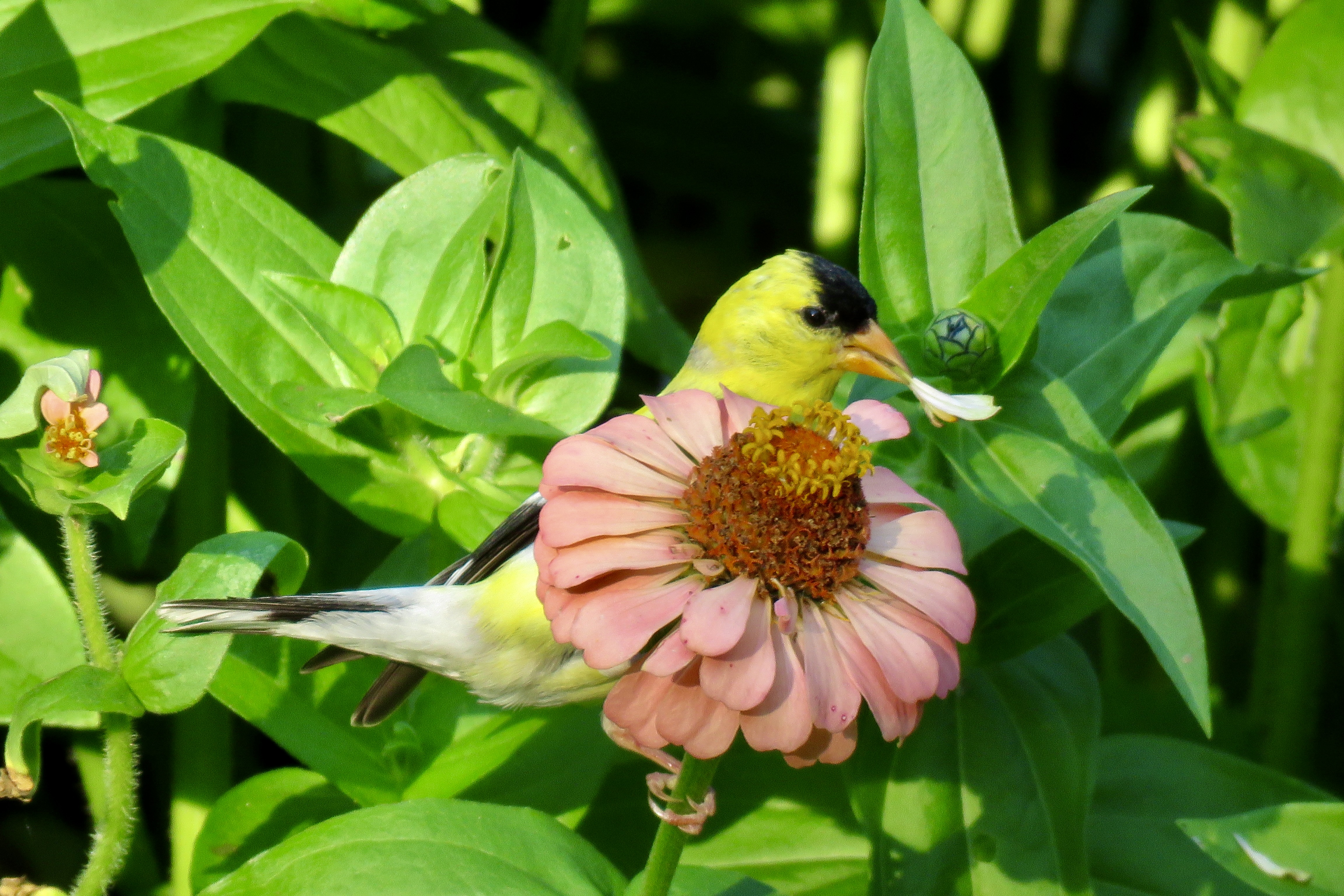 An Abundance of American Goldfinches helped to brighten my gardens.