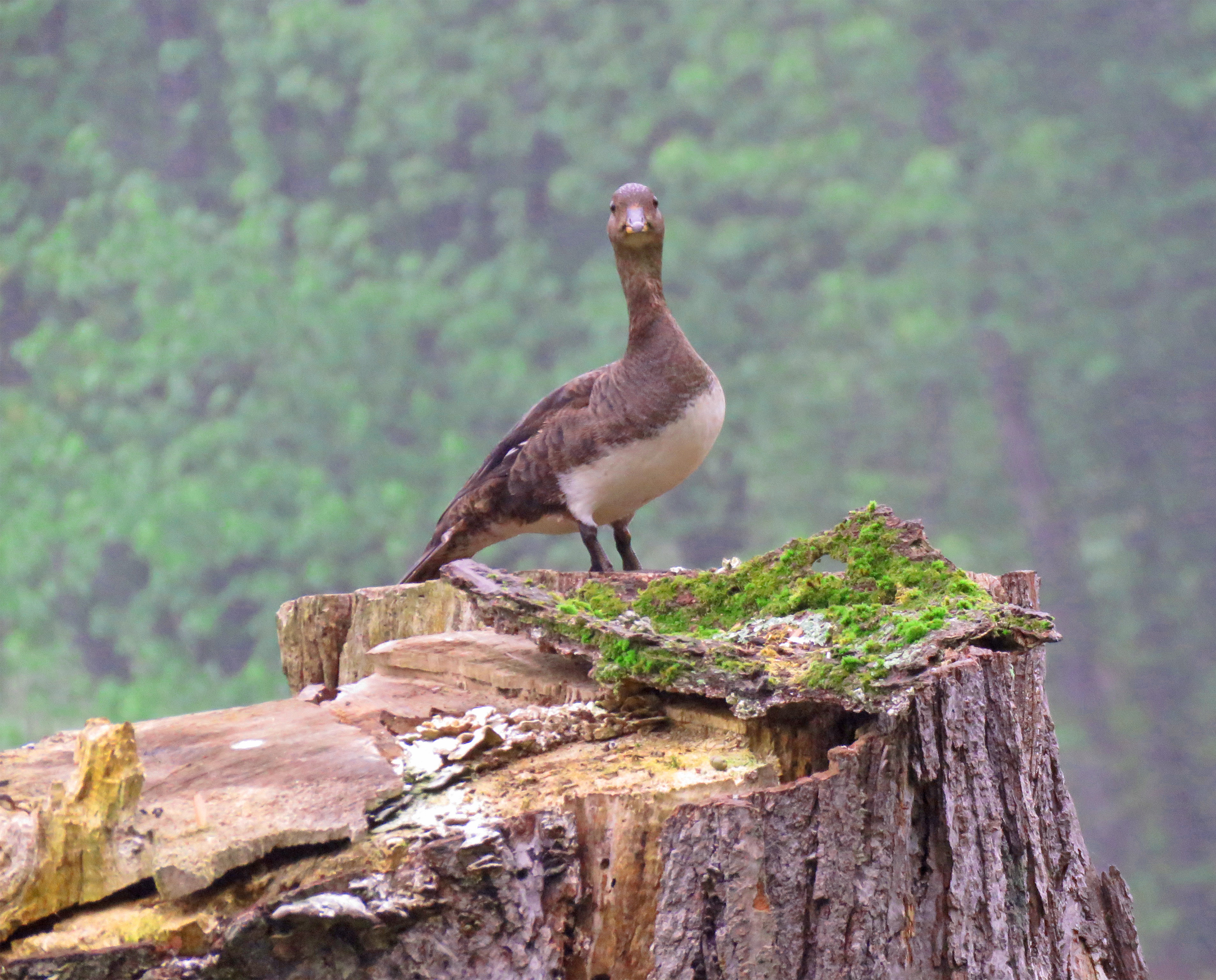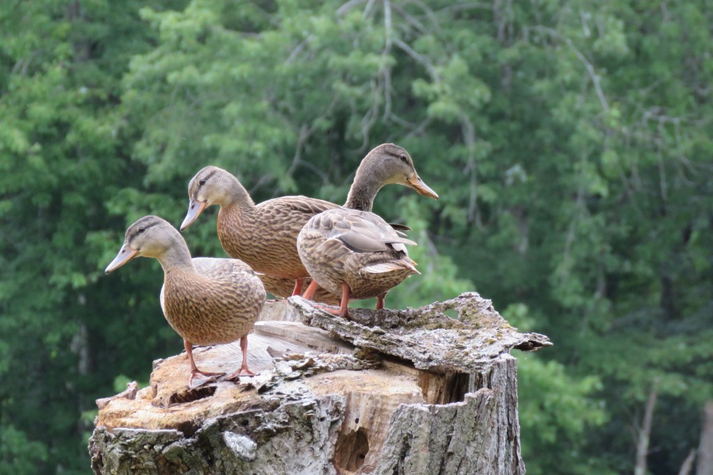 The ducks behaved like odd ducks. They took a liking to the top of the oak slag.
